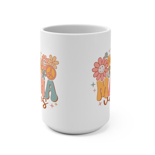 Mama Vibes Floral Peace Hippie Retro Coffee Mug, Mothers Day Gift, Boho Chic Drinkware, Colorful Flower Mug for Mom