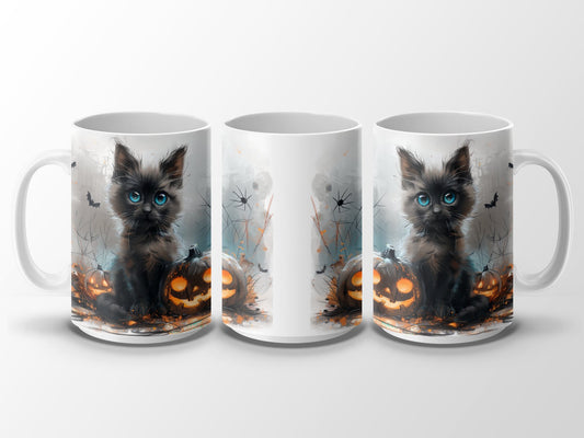 Cute Halloween Black Cat with Pumpkins 15 oz Mug