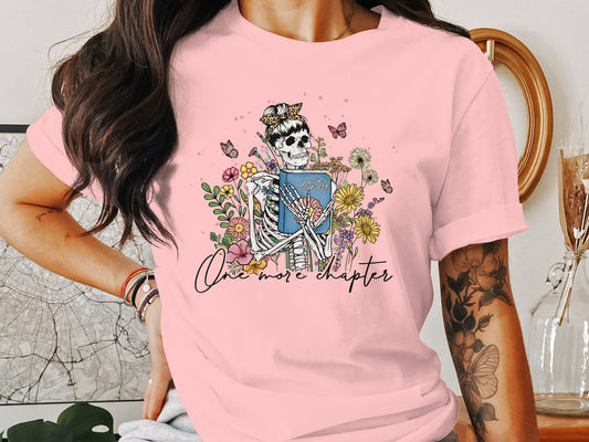 Floral Skull T-Shirt, Butterfly Bone Graphic Tee, Book Lover T-Shirt, One More Chapter Inspirational Quote, Unique Artistic Casual Wear