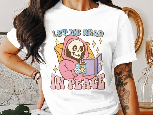 Book Lover T-Shirt, Cozy Reading Skull with Hoodie, Let Me Read In Peace Design, Cute Graphic Tee, Unisex Casual Apparel