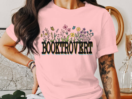 Bookish T-Shirt with Floral Pattern, Booktrovert Graphic Tee, Colorful Reader's Top, Gift for Book Lovers