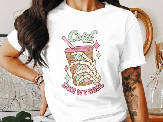 Vintage Iced Coffee T-Shirt, Cold Like My Soul Graphic Tee, Retro Drink Lovers Casual Top, Summer Fashion