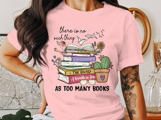 Book Lover T-Shirt, There Is No Such Thing As Too Many Books, Literary Tee, Reading Shirt, Bookish Gift for Readers, Bibliophile Top
