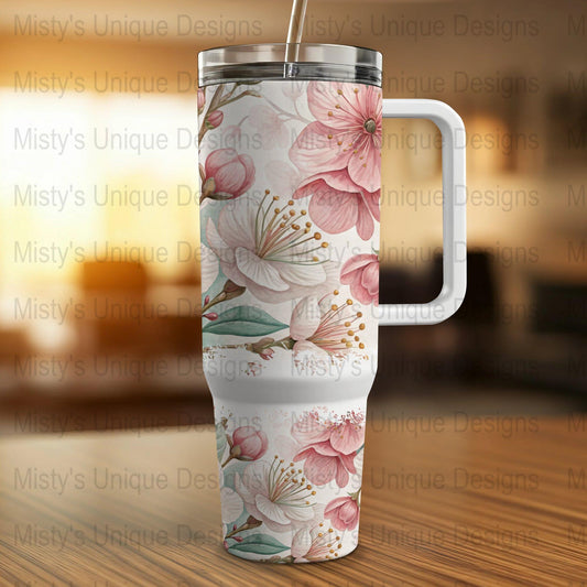 Floral Cherry Blossom 400z Tumbler Wrap, Pink White Blossoms Tumbler Wrap, Spring Floral Tumbler Wrap, Gifts for Her