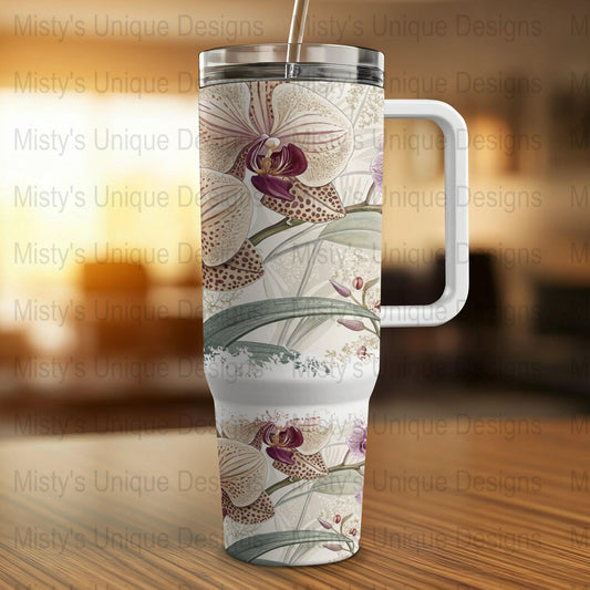 Floral Orchid Design 40oz Tumbler Wrap, Botanical Tumbler Wrap for 40oz Tumbler, Orchid Flower Wrap, Floral Tumbler Accessories