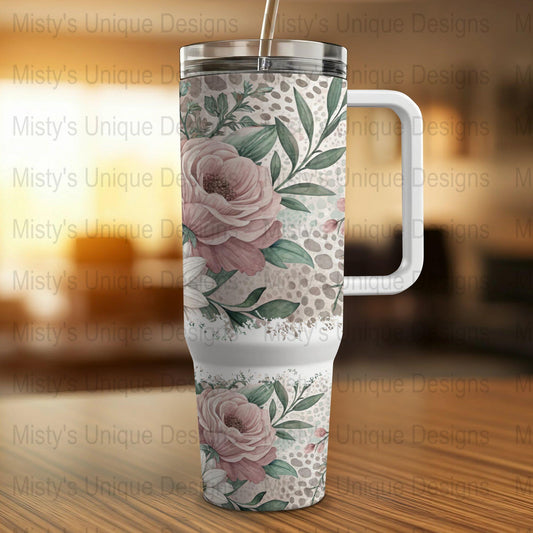 Floral Leopard Print Wrap, 40oz Tumbler Wrap, Flower Tumbler Wrap, Leopard Tumbler Wrap, Vintage Style Tumbler Wrap, Roses and Daisies Print