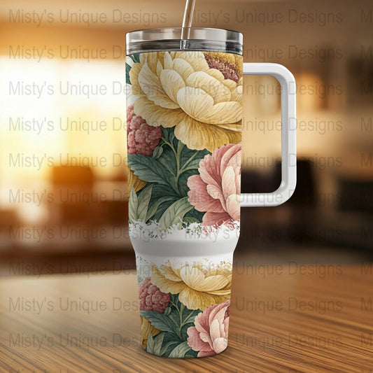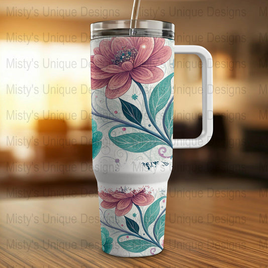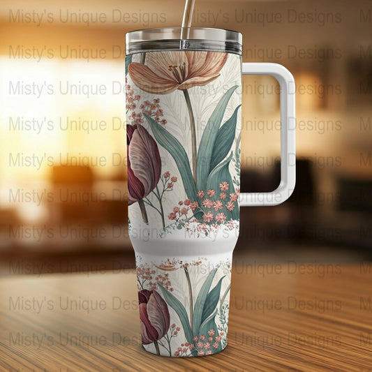 Elegant Floral 40oz Tumbler Wrap, Vintage Flower Design for 40oz Tumblers, Wildflower Tumbler Wrap, Floral Tumbler Decal