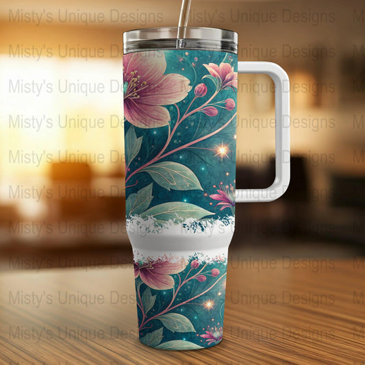 Floral 40oz Tumbler Wrap, Fits Most 40oz Tumblers, Floral Tumbler Sleeve, Nature Inspired Tumbler Cover, Flower Design Cup Wrap