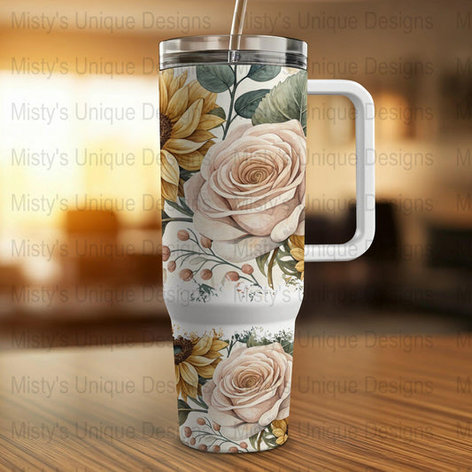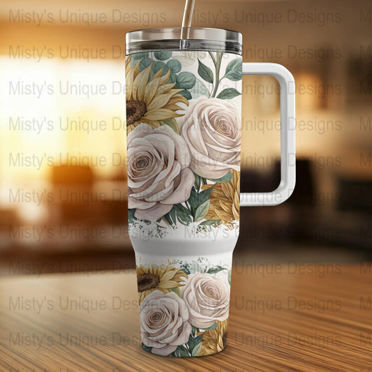 Sunflower Rose Floral Tumbler Wrap, 40oz Tumbler Skin, Flower Pattern Tumbler Decal, Botanical Drinkware Wrap, Nature Inspired Tumbler Art