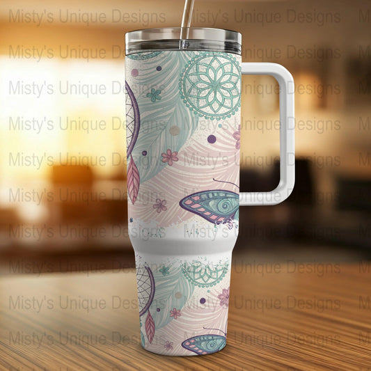 Boho Dreamcatcher Tumbler Wrap, Butterfly Feathers Tumbler Wrap, Pastel Mandala Art 40oz Tumbler Wrap, Custom Tumbler Design