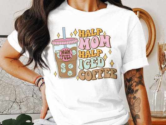 Mom Fuel Half Iced Coffee T-Shirt, Funny Mom Tee, Mother's Day Gift, Casual Graphic Tee, Comfy Mom Life Shirt, Trendy Boho Style Top