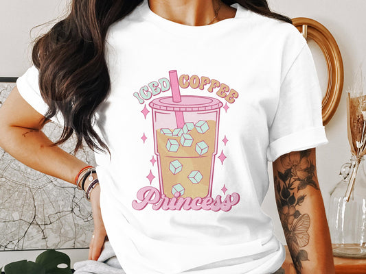 Iced Coffee Princess T-Shirt, Cute Coffee Lover Shirt, Vintage Style Coffee Tee, Trendy Beverage Graphic Top, Casual Wear