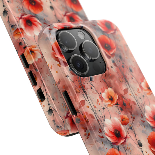 Watercolor Poppy Floral iPhone Case, Elegant Poppy Blossom Design, Protective Phone Cover, Stylish Watercolor Flower Pattern compatible with a large variety of iPhone models, Phone Case, Gift