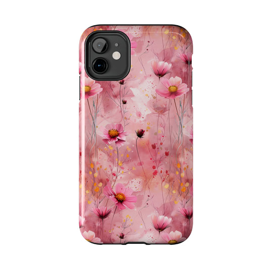 Pink and Yellow Fantasy Floral pattern iPhone Case, Aesthetic Phone Cover, Artsy Floral Design, Protective Phone Cover compatible with a large variety of iPhone models, Phone Case, Gift