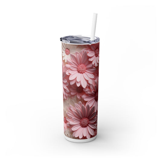 3D Pink and White Daisy Design Skinny Tumbler with Straw, 20oz