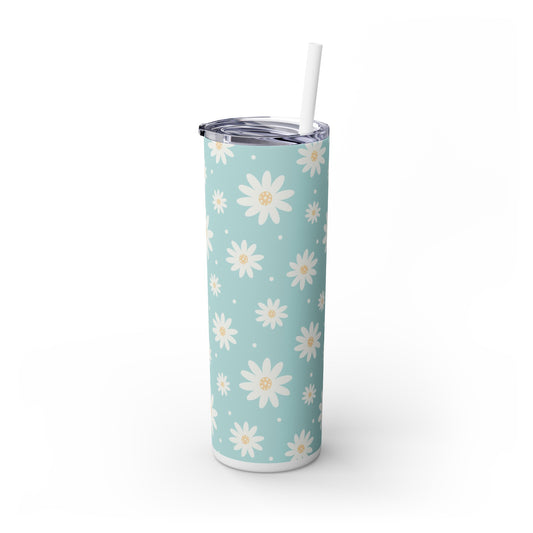 Blue Retro Daisy and Polka Dot Design Skinny Tumbler with Straw, 20oz