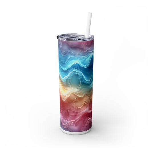 3D Pastel Waves Design Skinny Tumbler with Straw, 20oz