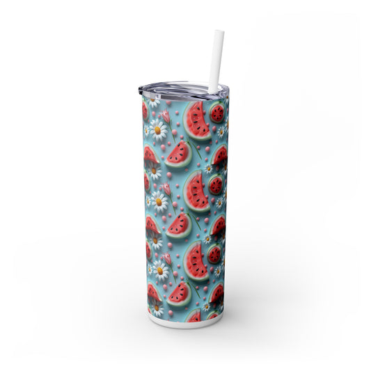 Watermelon Slices Design Skinny Tumbler with Straw, 20oz