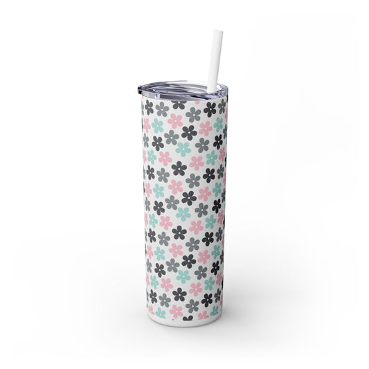 Retro Flower Design Skinny Tumbler with Straw, 20oz
