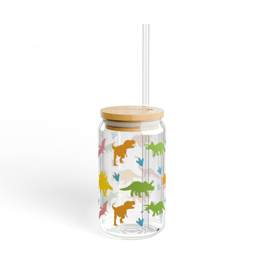 Dinosaur Glass Tumbler with lid and straw, 16oz