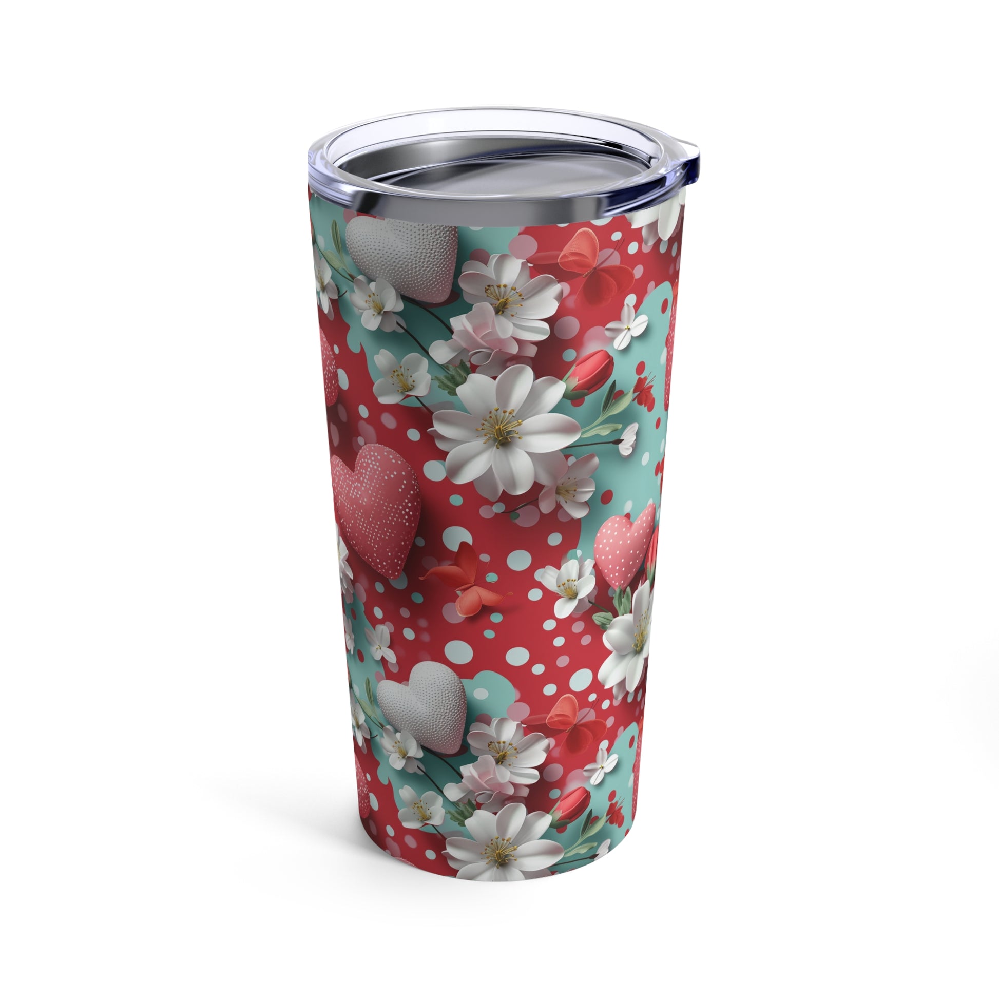 Red Polka Dot Hearts Digital Pattern Design 20 oz Stainless Steel Tumbler, Coffee Tumbler, Teacher Tumbler Gift, Mom Gift, Best Friend Gift